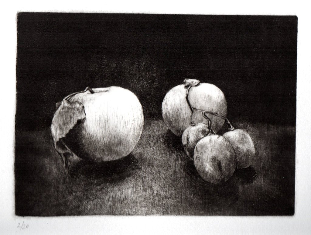 Direct technique of the metal etching (preferably copper), by means of a steel tip sharp, that is hold like a pencil.
