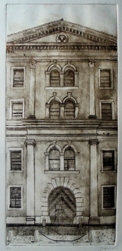 2016, Ingresso principale su via Ardigò, puntasecca su vetro sintetico 300 x 420 mm, carta Fabriano 35 x 50 cm
