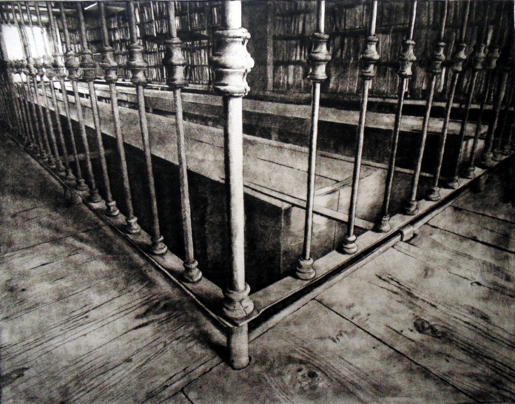 2016, Interno angolo primo piano, puntasecca su plexiglas 200 x 300 mm, carta Fabriano 35 x 50 cm