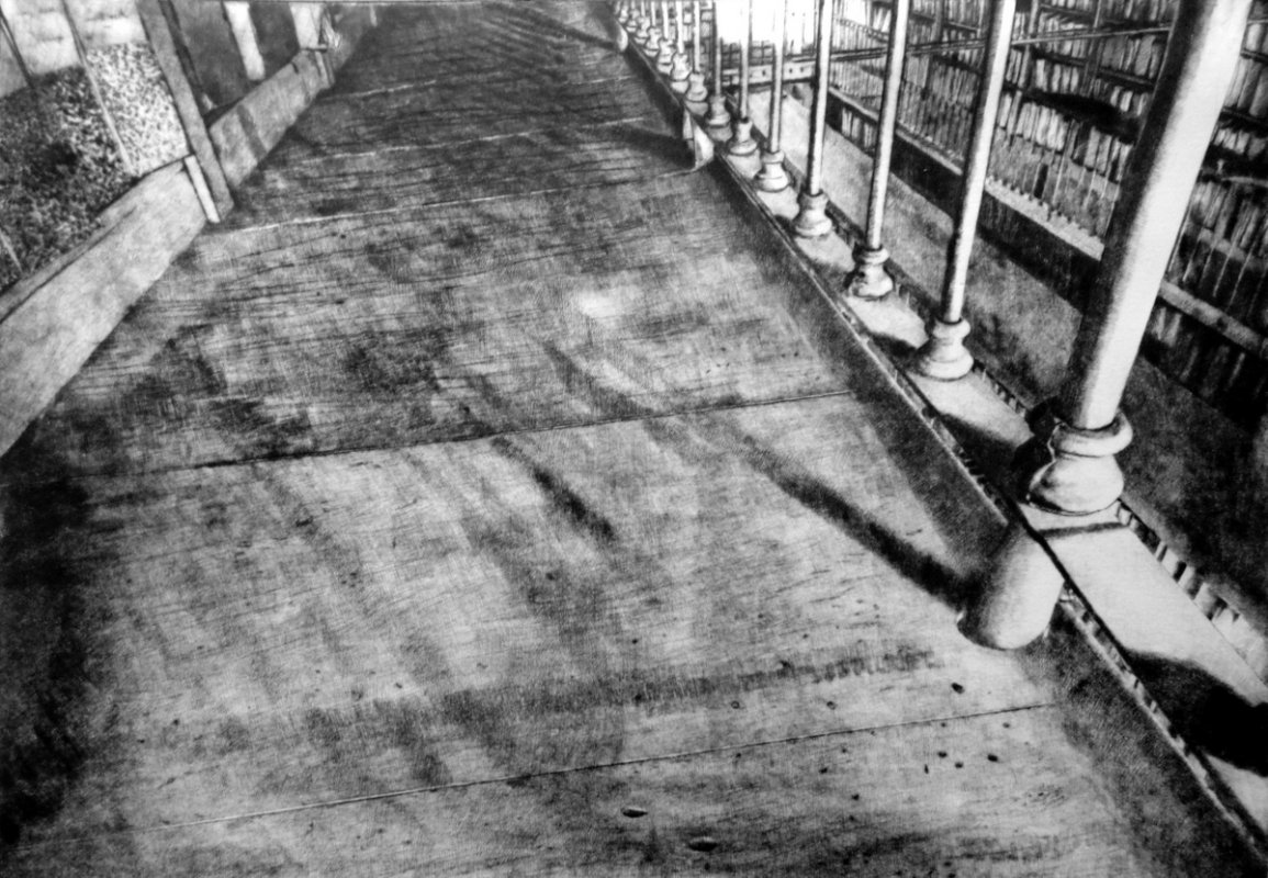 2016, Veduta interno, puntasecca su vetro sintetico 420 x 300 mm, carta Fabriano 50 x 35 cm