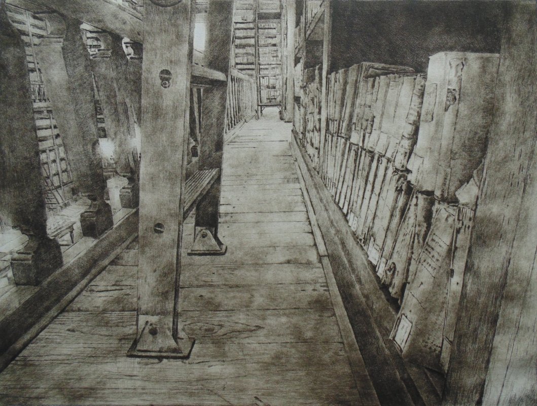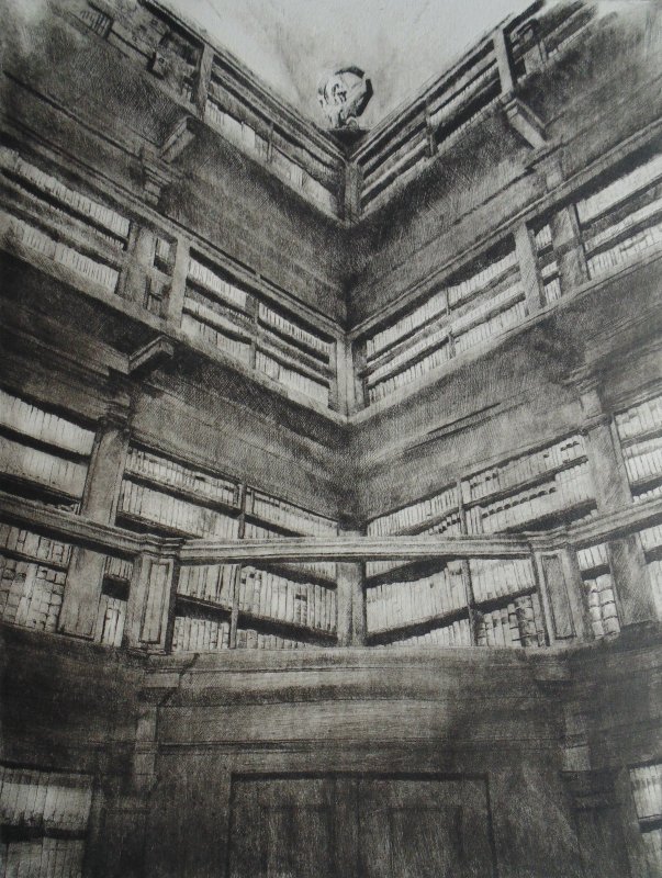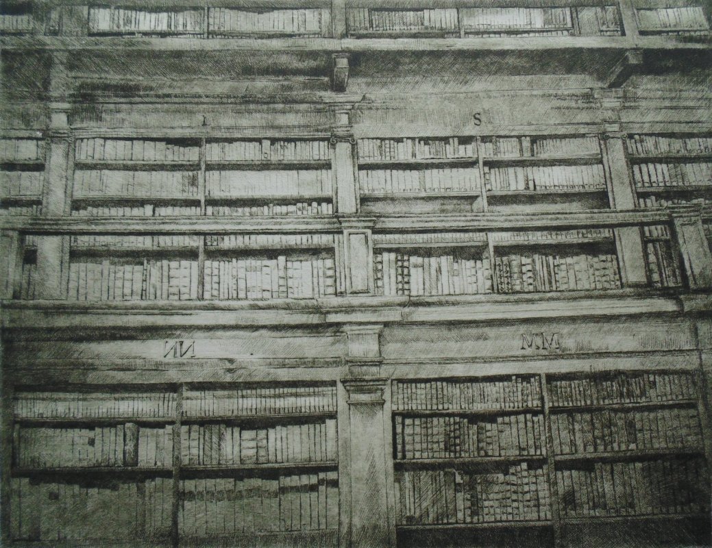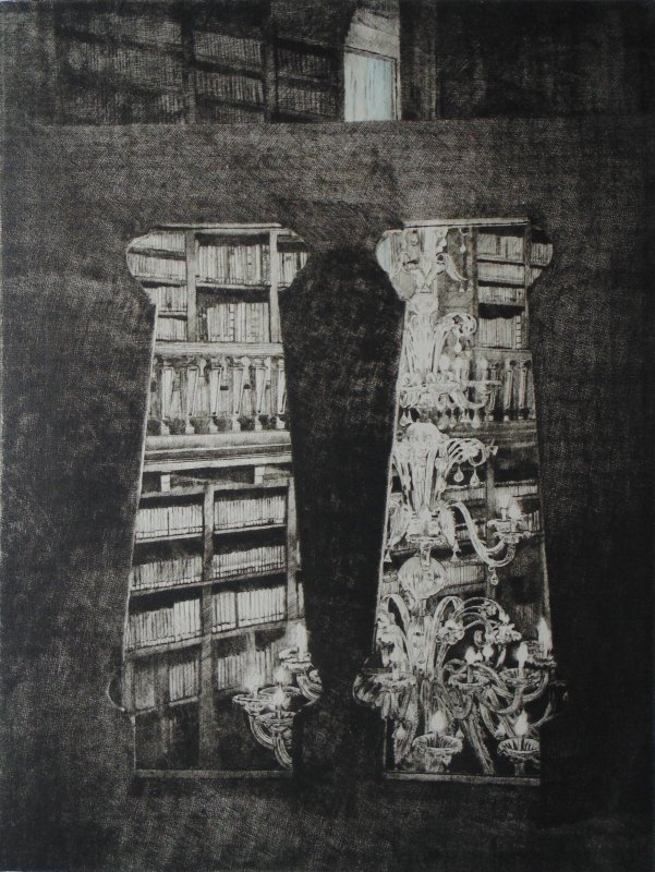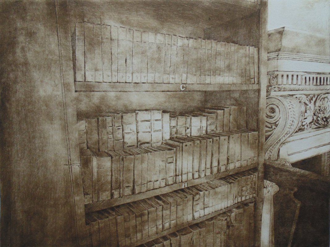 "Nel 2016 ho eseguito ed esposto il progetto L'archivio Inciso, incisioni sulla sezione ottocentesca dell'Archivio Storico di Mantova, un posto magico dove il tempo sembra fermarsi sommerso nel pulviscolo spesso della polvere, dall'aria rarefatta e dalle luci improvvise dei finestroni e penombre/ombre dense, impenetrabili. Ho provato gioia e soddisfazione nel realizzare quel lavoro che quando durante l'inaugurazione della stessa Giancarlo Ciaramelli (già Responsabile della sezione Fondi storici Stampe e Disegni della Biblioteca Teresiana), venuto a visitare la mostra, mi disse forse per battuta o no, di provare a realizzare qualche lavoro anche sulla Bilbioteca Teresiana, ho subito risposto volentieri.